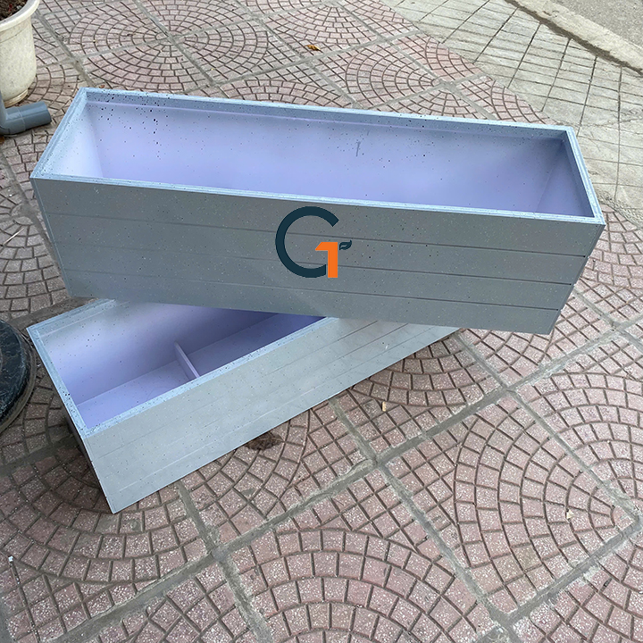 Chậu gỗ nhựa ngoài trời kẻ chỉ sơn màu xám nhạt giả đá các loại