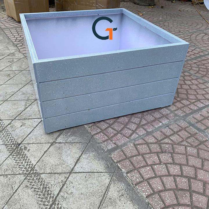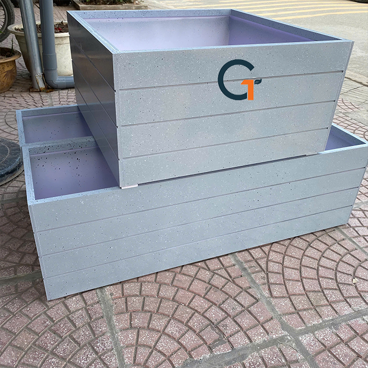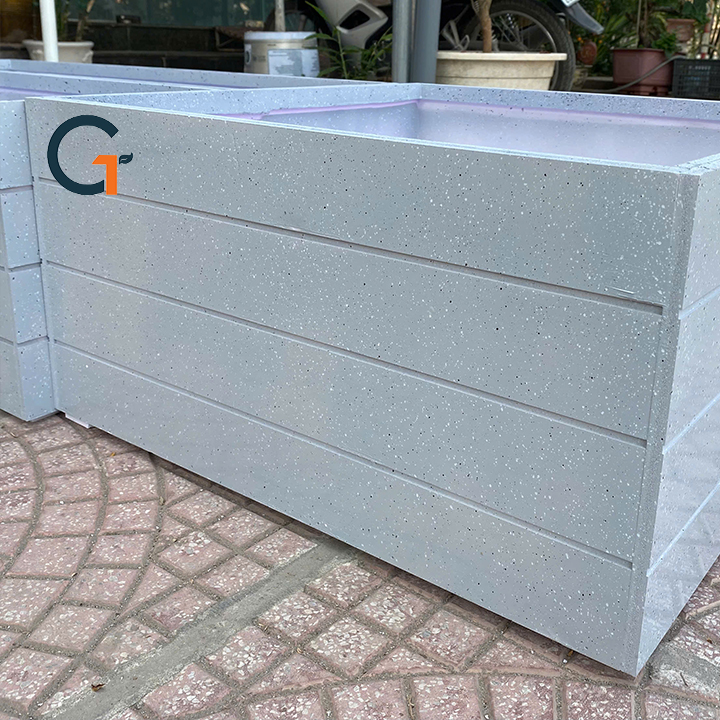 Chậu gỗ nhựa ngoài trời kẻ chỉ sơn màu xám nhạt giả đá các loại