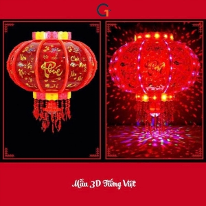 Đèn lồng điện 3D xoay 360 kết hợp đèn led trang trí ngày tết với kích thước khác nhau